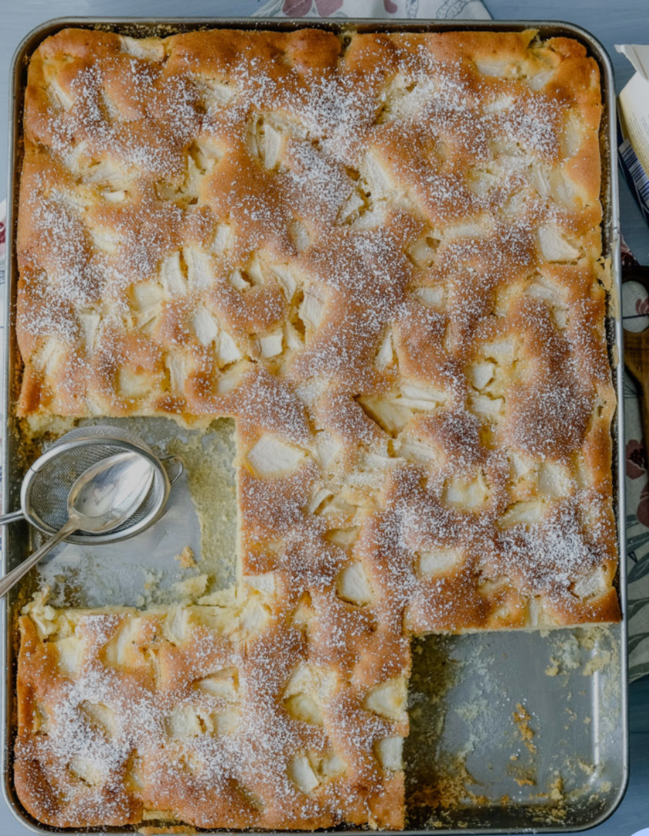 Das Angenehme mit dem Nützlichen verbinden. Wir haben einen leckeren Apfelkuchen gebacken und dann aufgeschrieben, wie wir es gemacht haben.